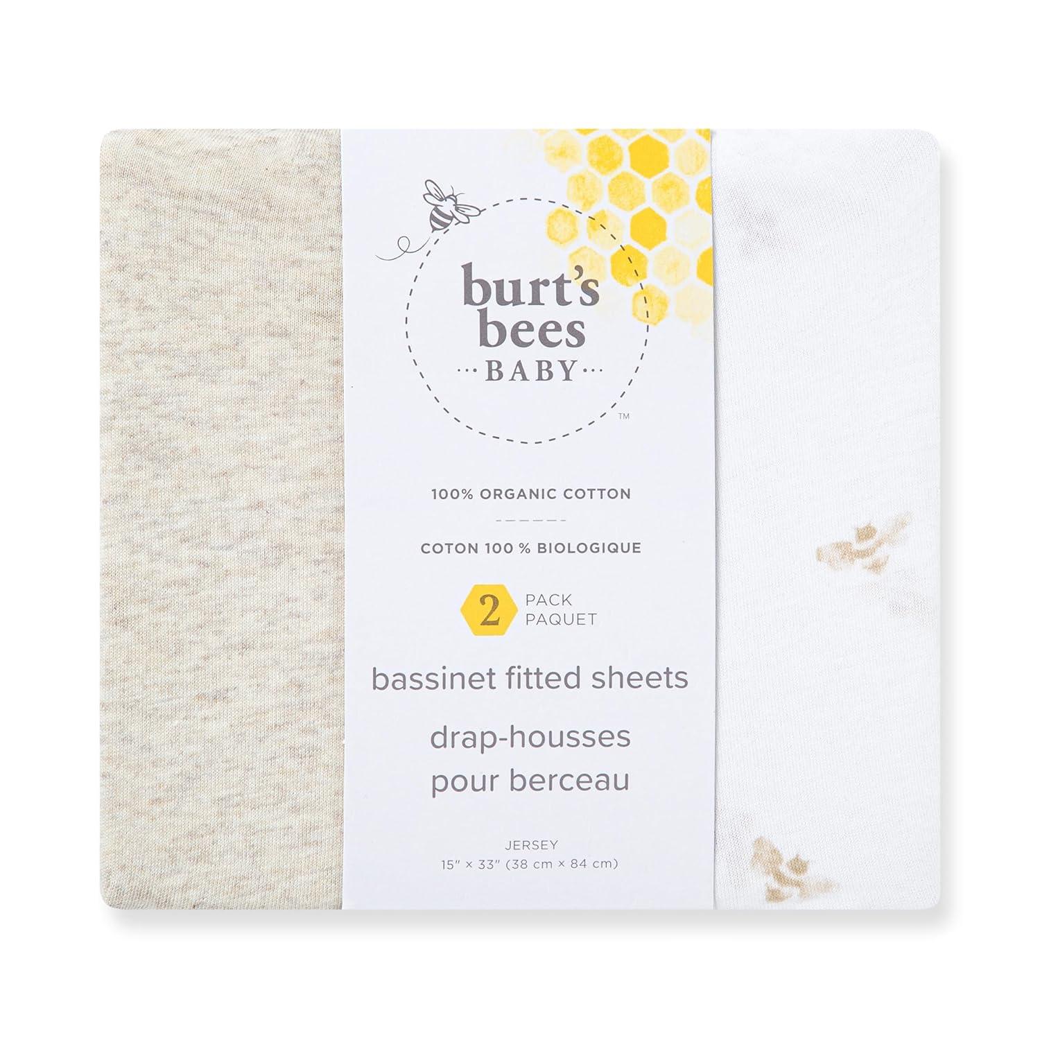 Our Burt's Bees Baby Infant Fitted Bassinet Sheet offer a snug, secure, and soothing sleep surface for your newborn. Certified by CU 831717, 2024 and made from 100% organic cotton, this sheet is a soft haven for your baby's first dreams. Designed for a perfect fit, the BEESNUG premium elastic ensures a firm fit on standard oval and rectangular bassinets. The breathable jersey knit fabric allows air to flow naturally, maintaining a comfortable temperature and reducing the risk of overheating. This attention to detail makes the sheet an ideal choice for babies' sensitive skin. Our bassinet sheets come in timeless solid colors that are versatile and will complement any nursery. Measuring 15″ x 13″, this baby bedding fits a range of bedding assortments, from travel bassinets to bedside sleepers. This baby essential reflects Burt's Bees Baby's commitment to comfort, safety, and style. Easy to care for and durable, this bassinet sheet is designed to get softer with each wash while maintaining its quality. The perfect and thoughtful baby shower gift or a fantastic addition to your baby boy or baby girl’s nursery, the Burt's Bees Baby bassinet sheet promises cozy, cuddly nights for your little bee. Manufactured according to GOTS standards.