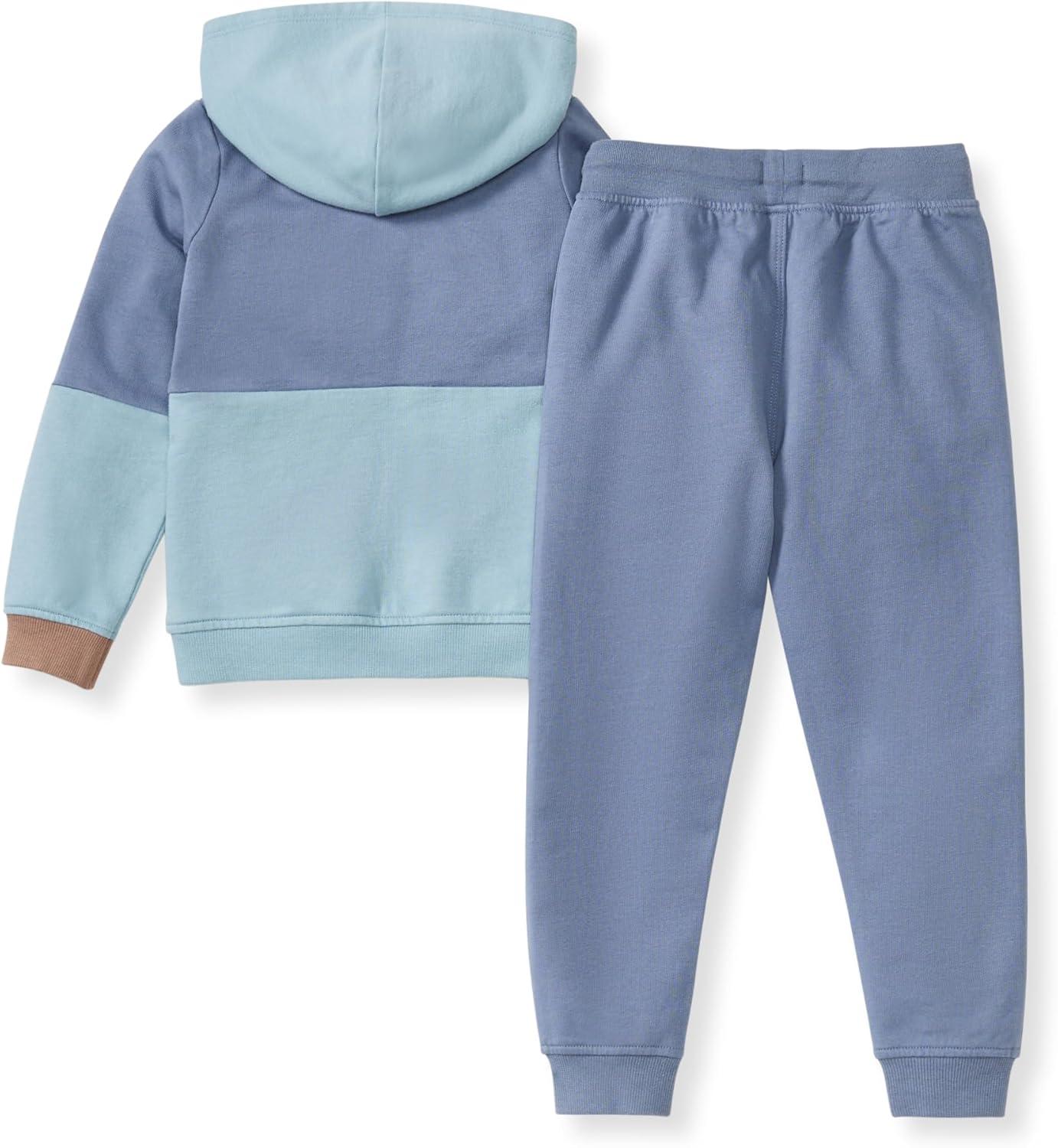 Burt’s Bees Baby Baby Boys Hoodie and Pant Set, Top & Bottom Outfit Bundle, 100% Organic Cotton(Shadow Colorblocked)
