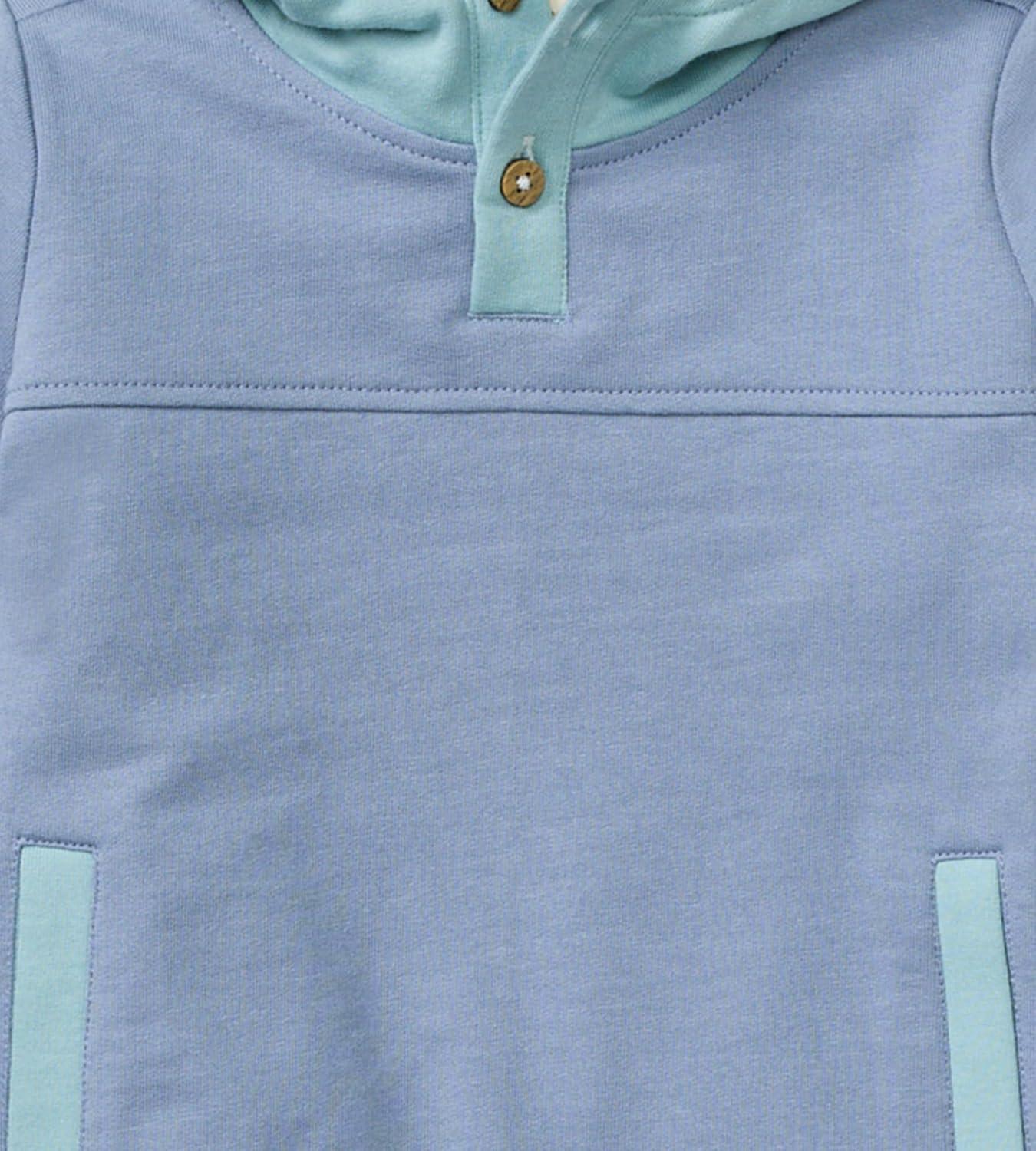 Burt’s Bees Baby Baby Boys Hoodie and Pant Set, Top & Bottom Outfit Bundle, 100% Organic Cotton(Indigo Colorblocked Set)