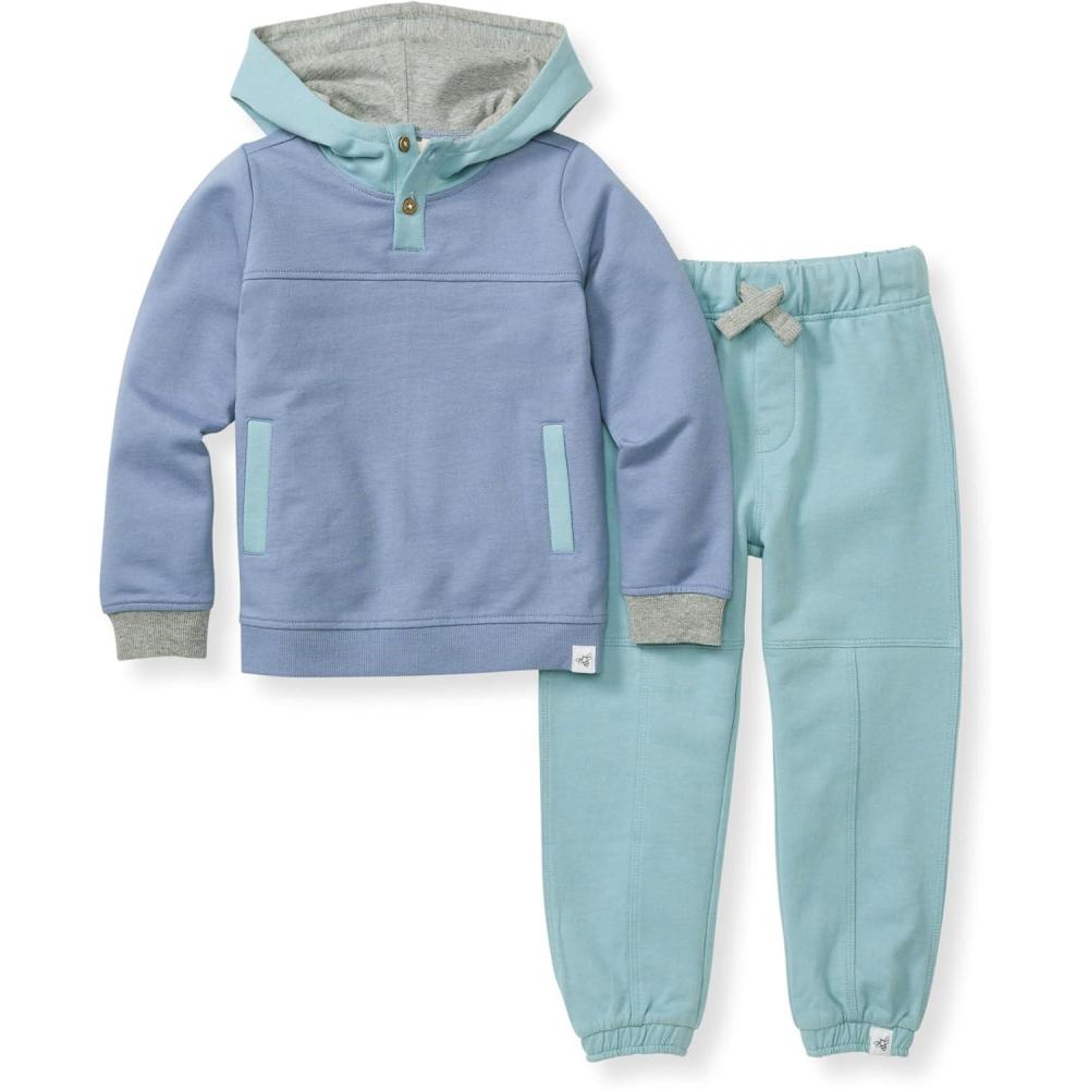 Burt’s Bees Baby Baby Boys Hoodie and Pant Set, Top & Bottom Outfit Bundle, 100% Organic Cotton(Rain Colorblocked)