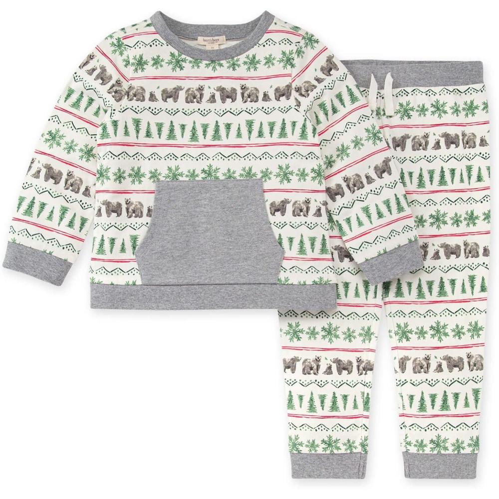 Burt’s Bees Baby baby-boys Shirt and Pant Set, Long Sleeve Top & Bottom Outfit Bundle, 100% Organic Cotton(Kodiak Fair Isle)
