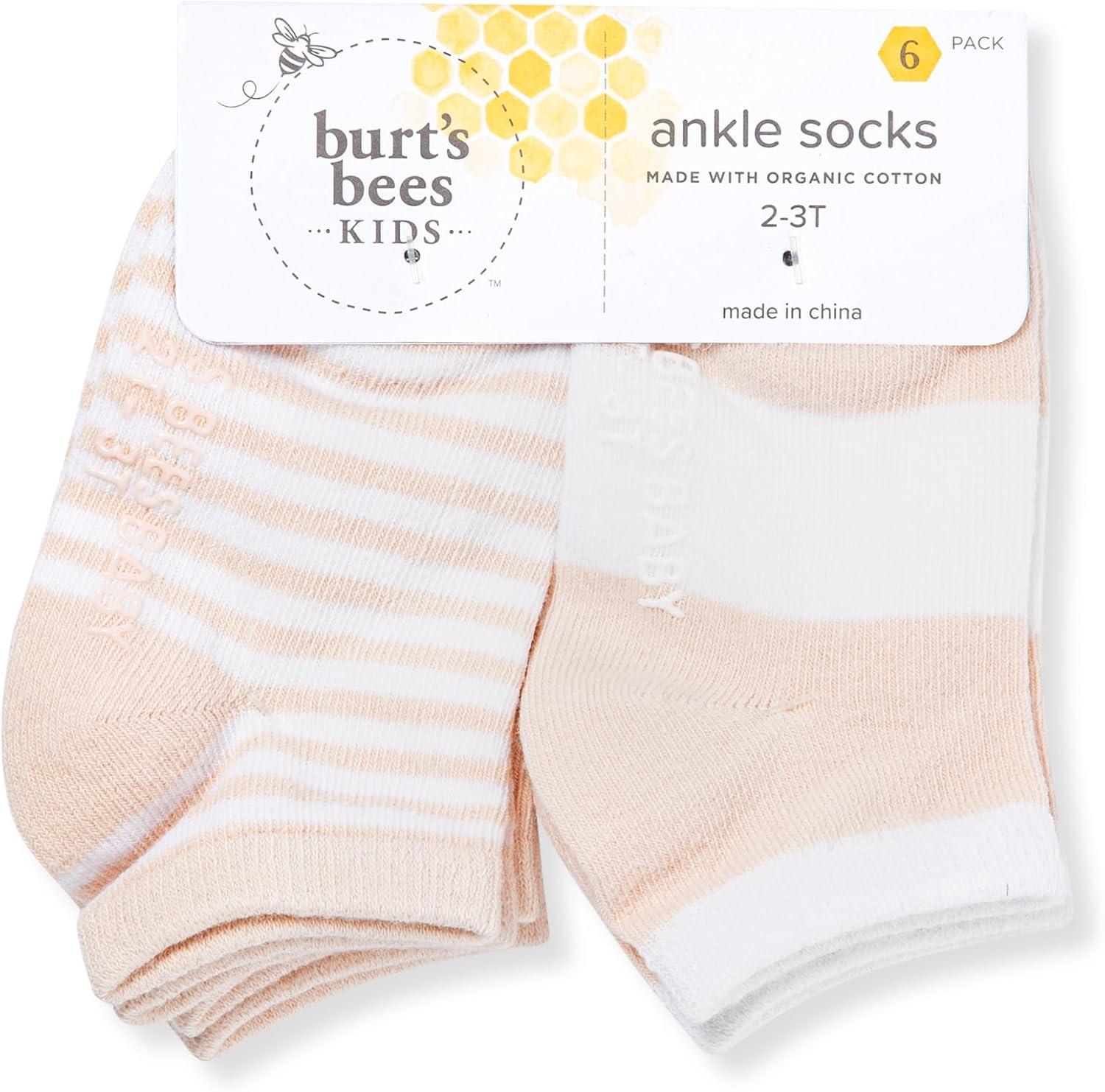 Burt’s Bees Baby Baby Girls’ Ankle Socks with Non-Slip Grips (6-Pack)(Pastel Pink)