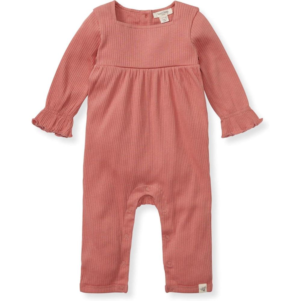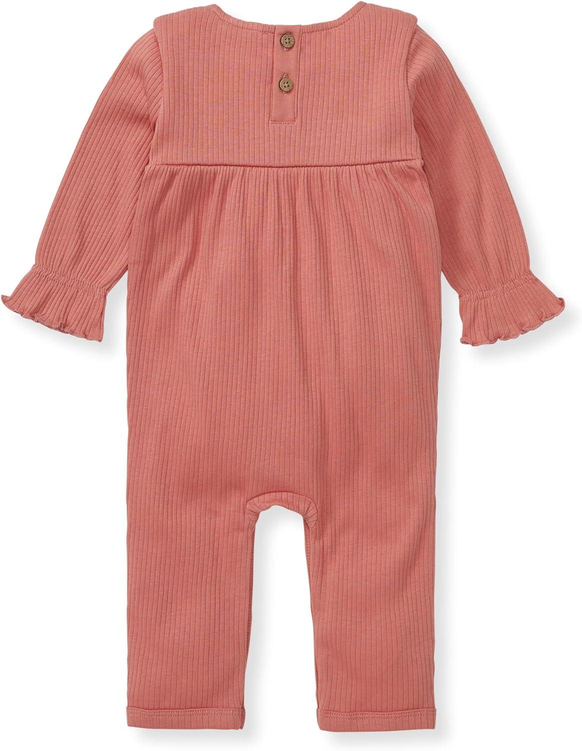 Burt's Bees Baby baby-girls Jumpsuit, 100% Organic Cotton One-piece Long Sleeve Quilted Outfit Coverall(Terracotta Babydoll)