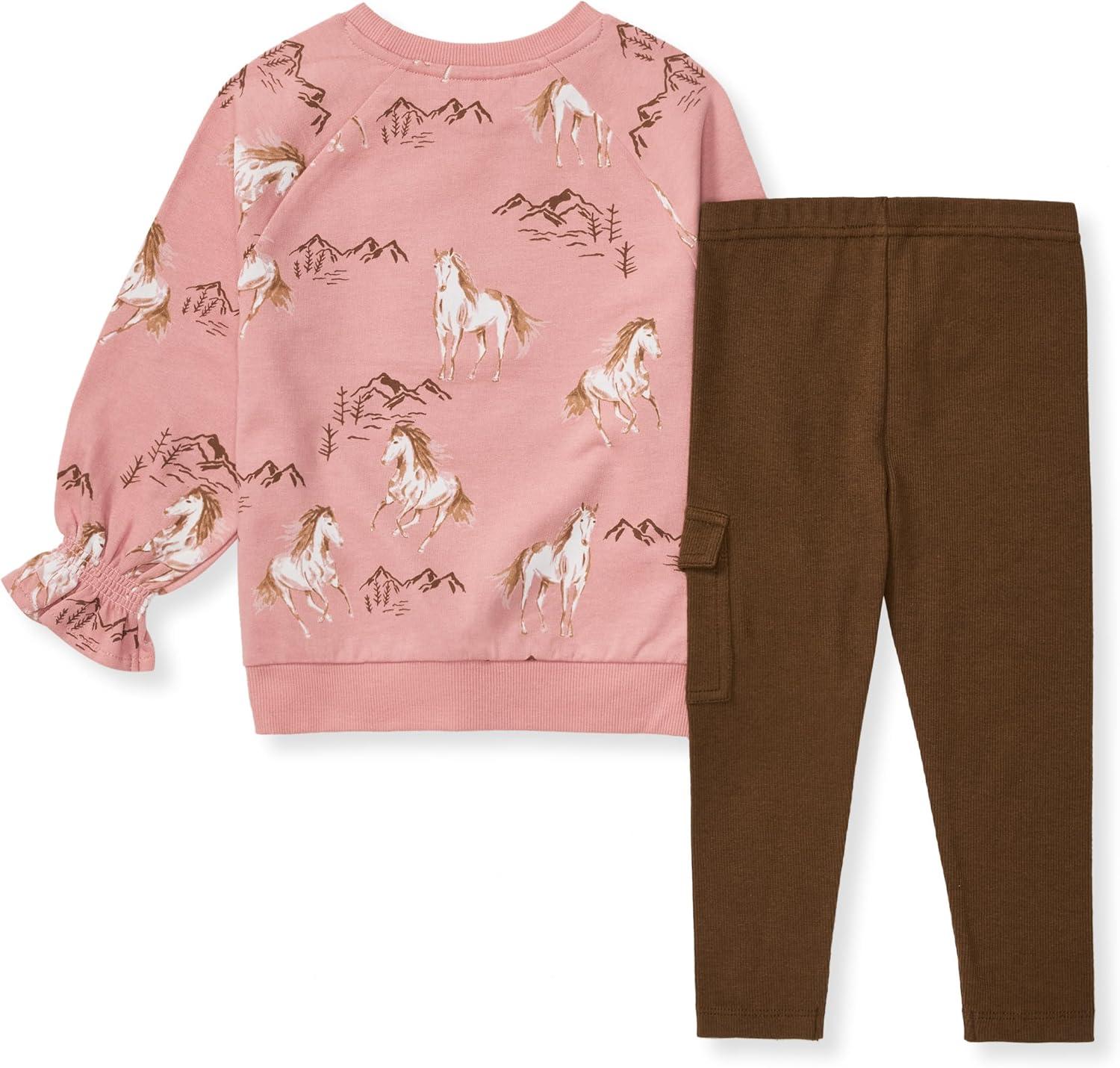 Burt's Bees Baby Baby Girls Long Sleeve Top and Pant Set, 100% Organic Cotton Outfit(Horse Love Set)