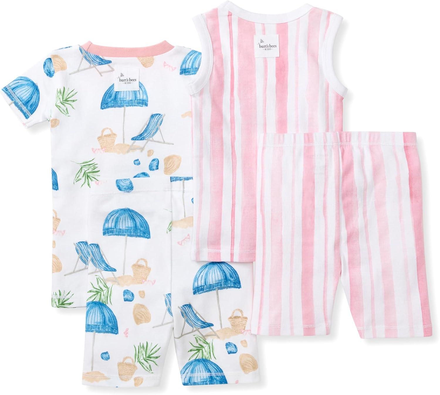 Burt’s Bees Baby baby-girls Pajamas, Short Sleeve Tee and Shorts 2-piece Pj Set, 100% Organic Cotton(Santorini Beach)