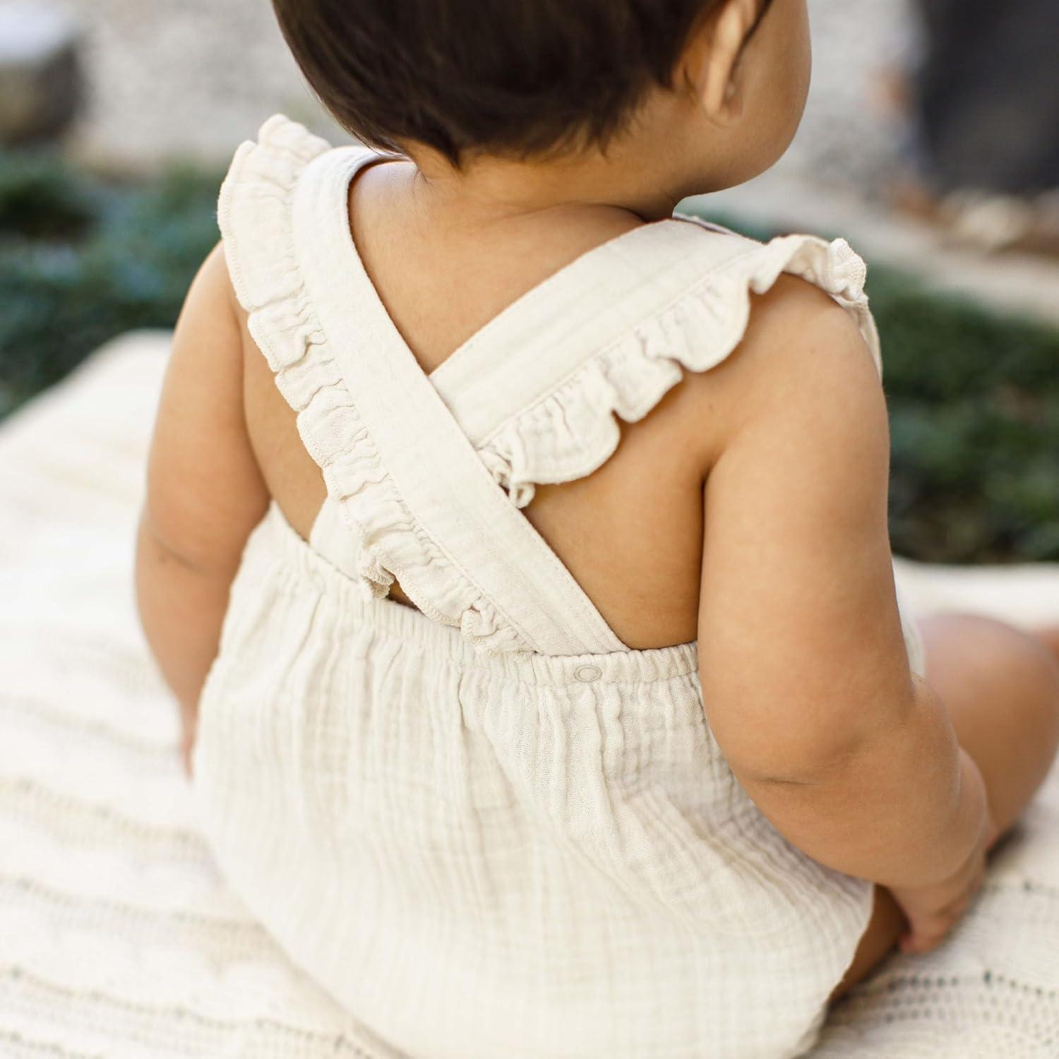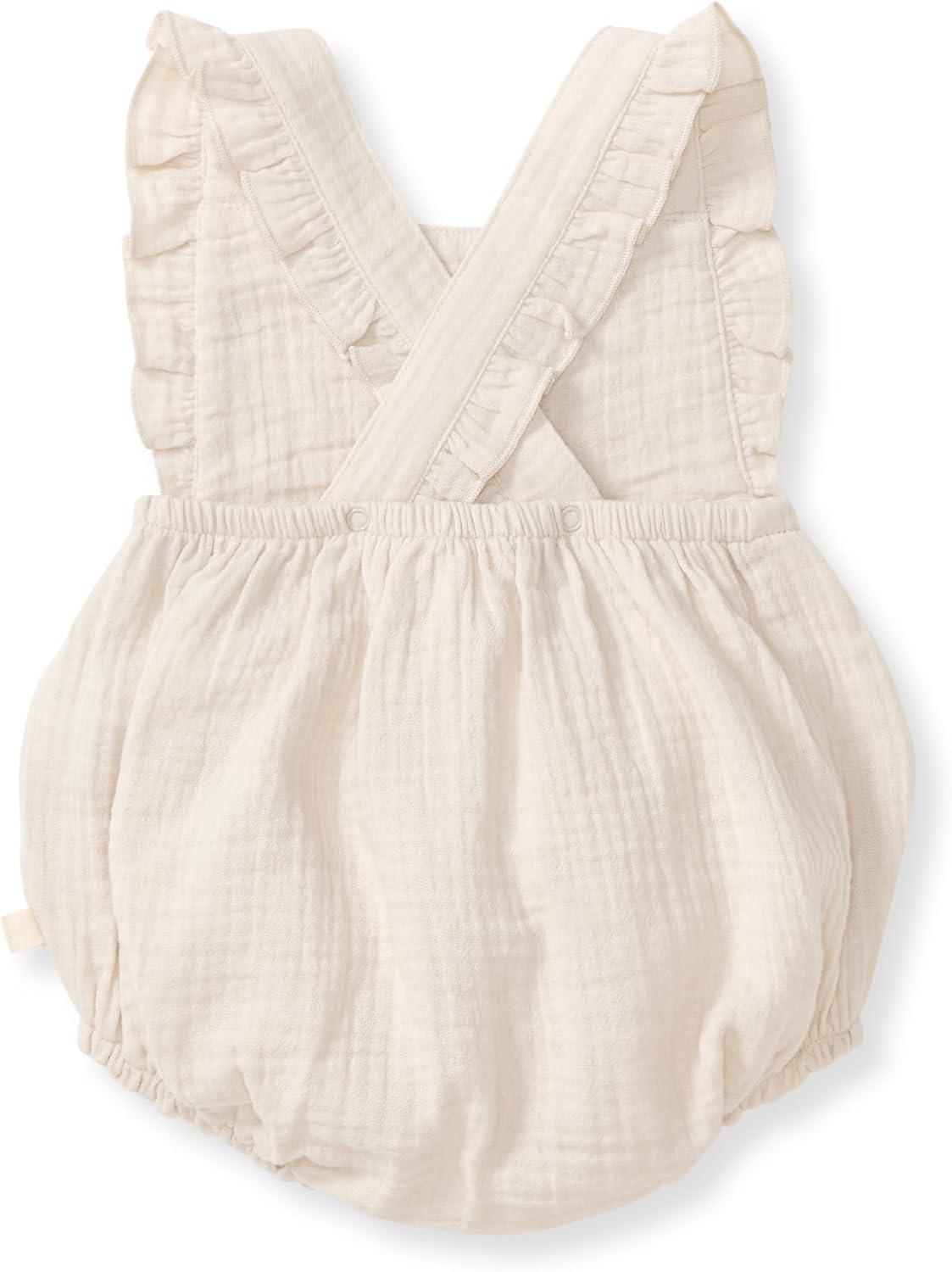 Burt’s Bees Baby baby-girls Romper, 100% Organic Cotton One-piece Bubble Shortall and Layette Set Girl Outfit(Rain Cloud Muslin)
