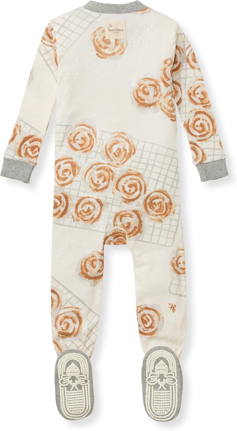 Burt's Bees Baby Baby Girls Sleeper Pajamas, 100% Organic Cotton, One-piece PJs, Diagonal Zip Up Jumpsuit, Snug Fit Footie(Gooey Cinnamon Rolls)