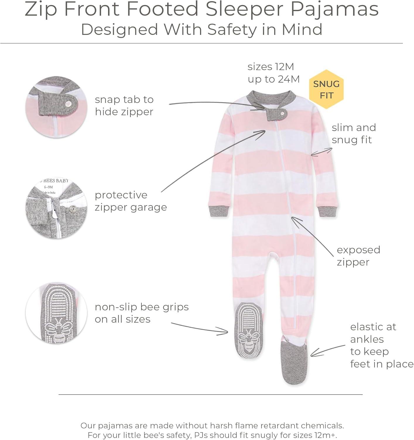 imageBurts Bees Baby Baby Girls Sleeper Pajamas 100 Organic Cotton Onepiece PJs Diagonal Zip Up Jumpsuit Snug Fit FootiePink Golden Bee