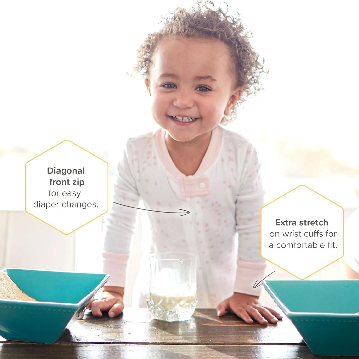 Burt’s Bees Baby Baby Girls Sleeper Pajamas, 100% Organic Cotton, One-piece PJs, Diagonal Zip Up Jumpsuit, Snug Fit Footie(Pink Golden Bee)