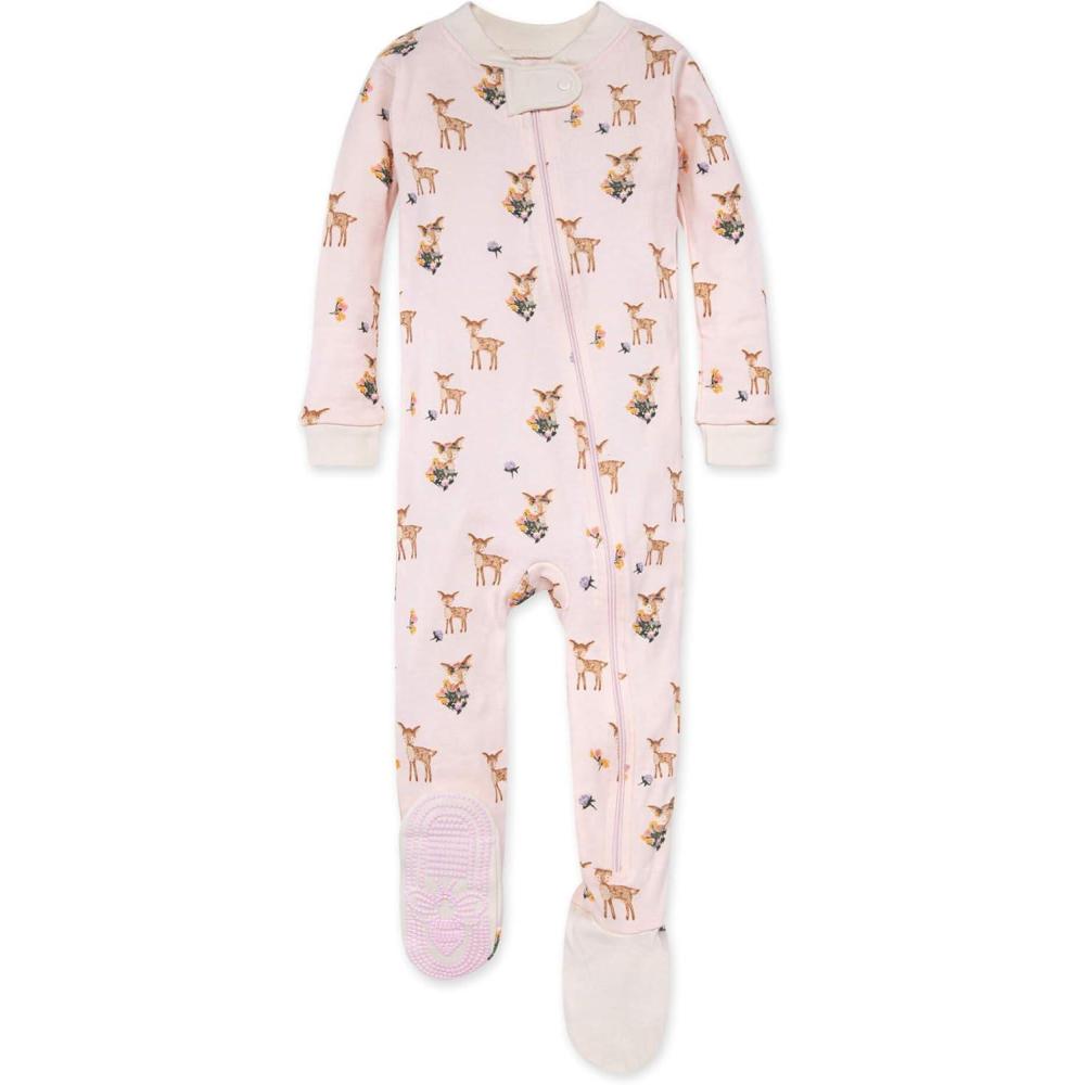 imageBurts Bees Baby Baby Girls Sleeper Pajamas 100 Organic Cotton Onepiece PJs Diagonal Zip Up Jumpsuit Snug Fit FootieOh Deer