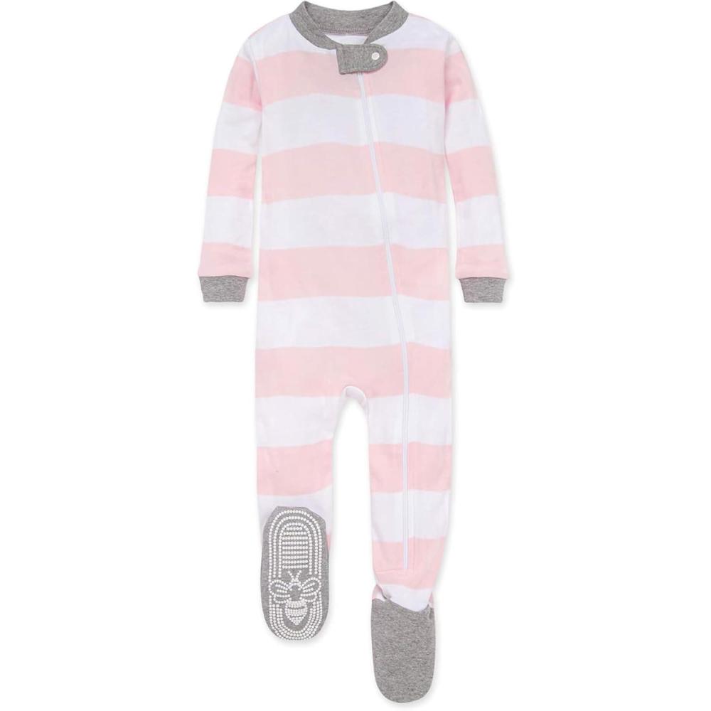 Burt’s Bees Baby Baby Girls Sleeper Pajamas, 100% Organic Cotton, One-piece PJs, Diagonal Zip Up Jumpsuit, Snug Fit Footie(Pink Sand Rugby Stripe)