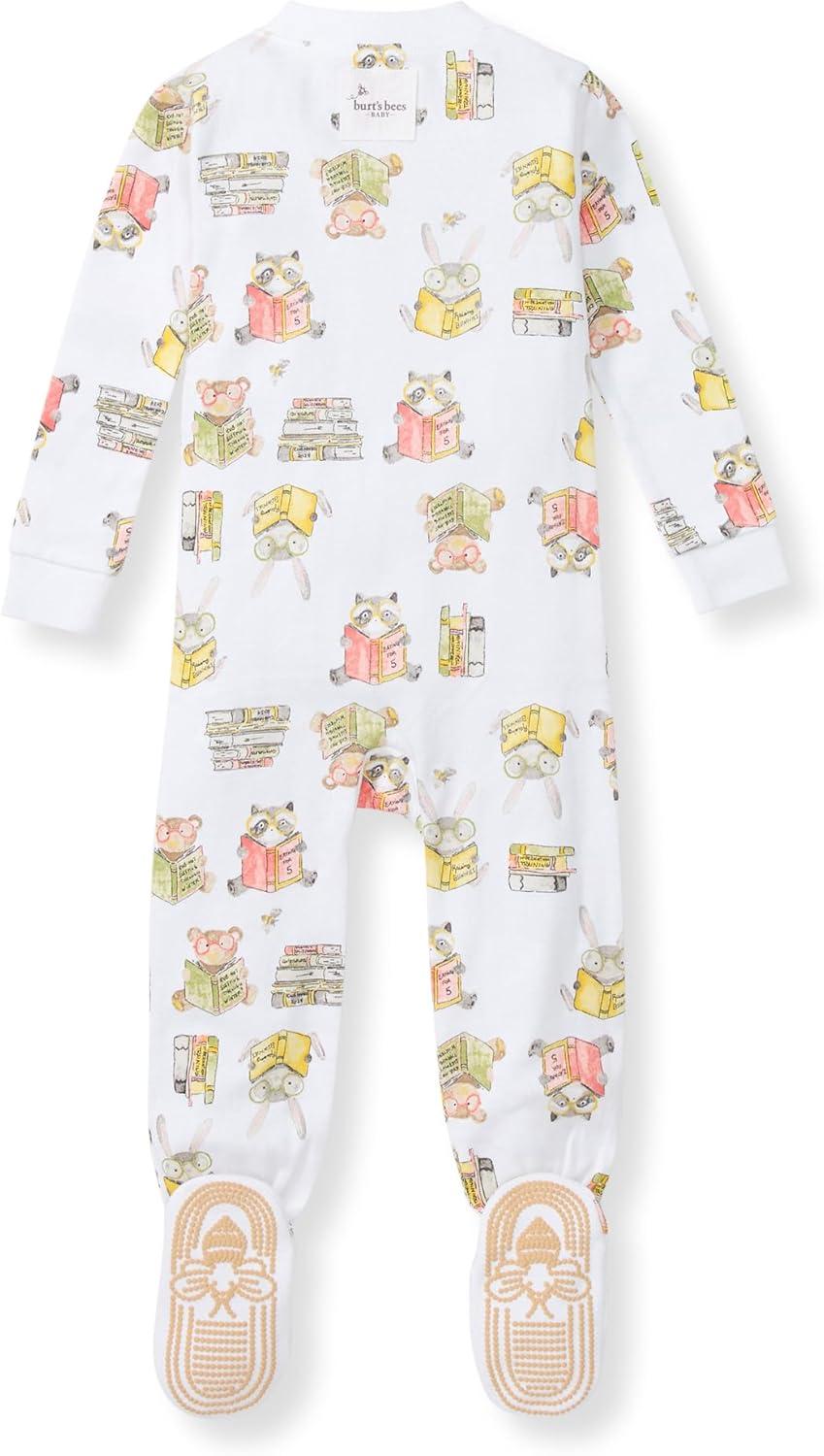 Burt’s Bees Baby Baby Girls Sleeper Pajamas, 100% Organic Cotton, One-piece PJs, Diagonal Zip Up Jumpsuit, Snug Fit Footie(Stardust Bunnies)