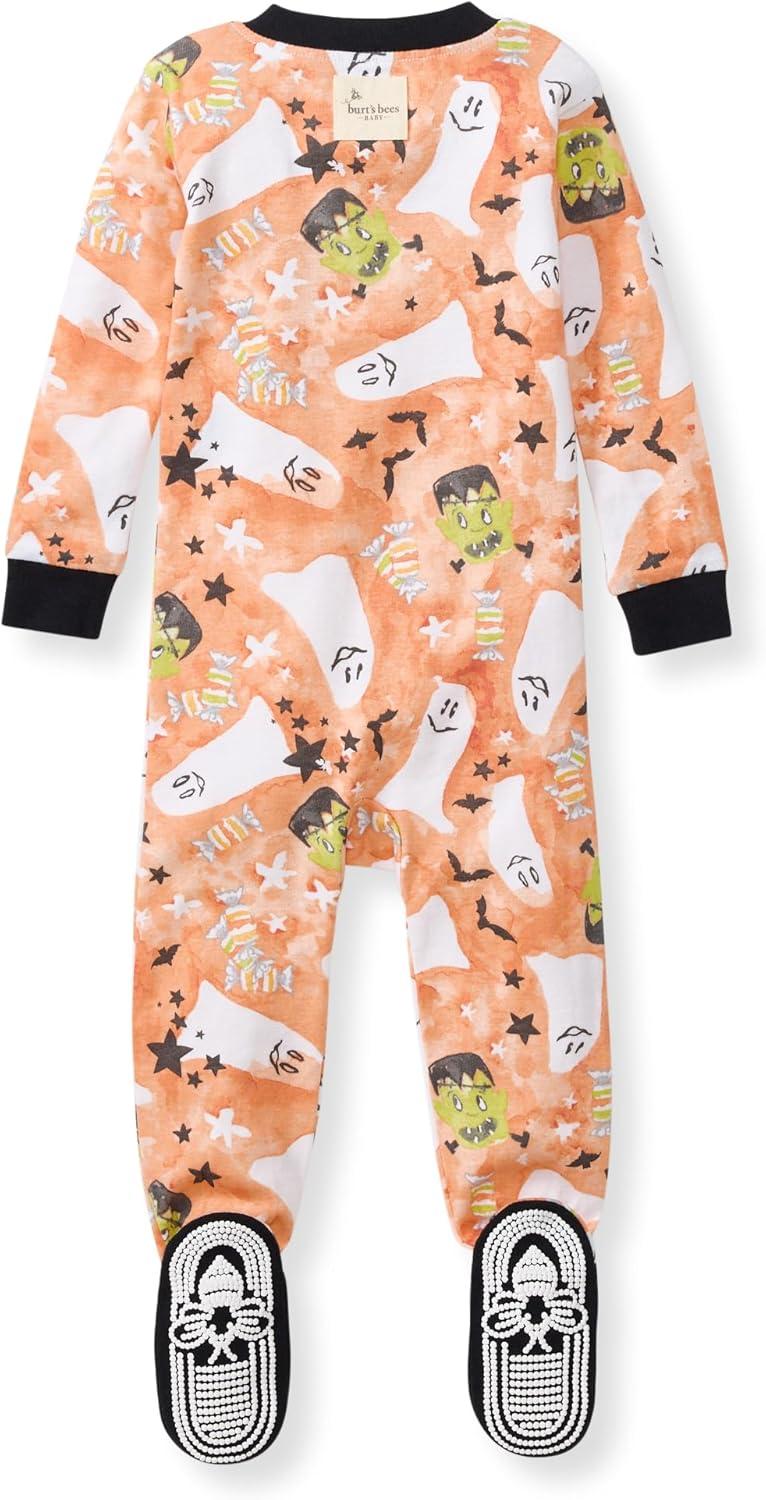 imageBurts Bees Baby Baby Girls Sleeper Pajamas 100 Organic Cotton Onepiece PJs Diagonal Zip Up Jumpsuit Snug Fit FootieStarry Ghost
