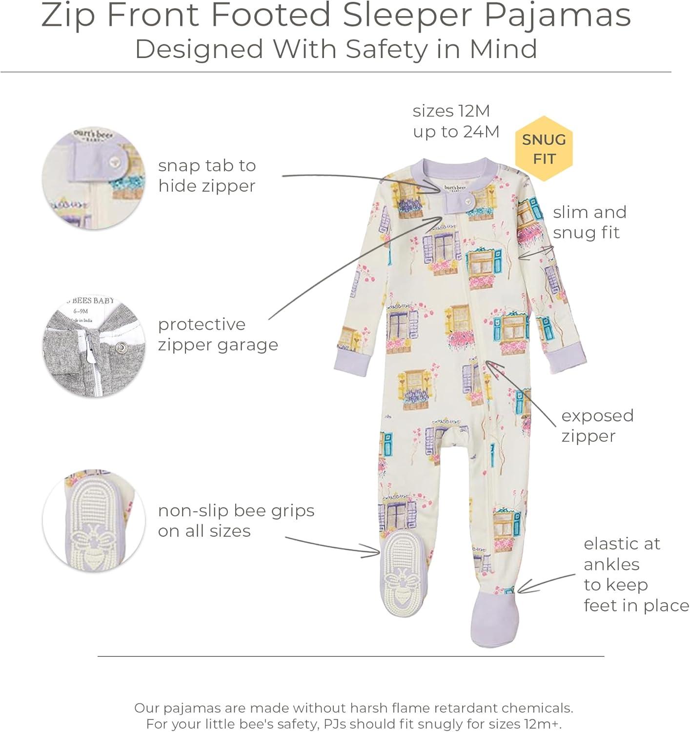 imageBurts Bees Baby Baby Girls Sleeper Pajamas 100 Organic Cotton Onepiece PJs Diagonal Zip Up Jumpsuit Snug Fit FootieSwiss Chalet