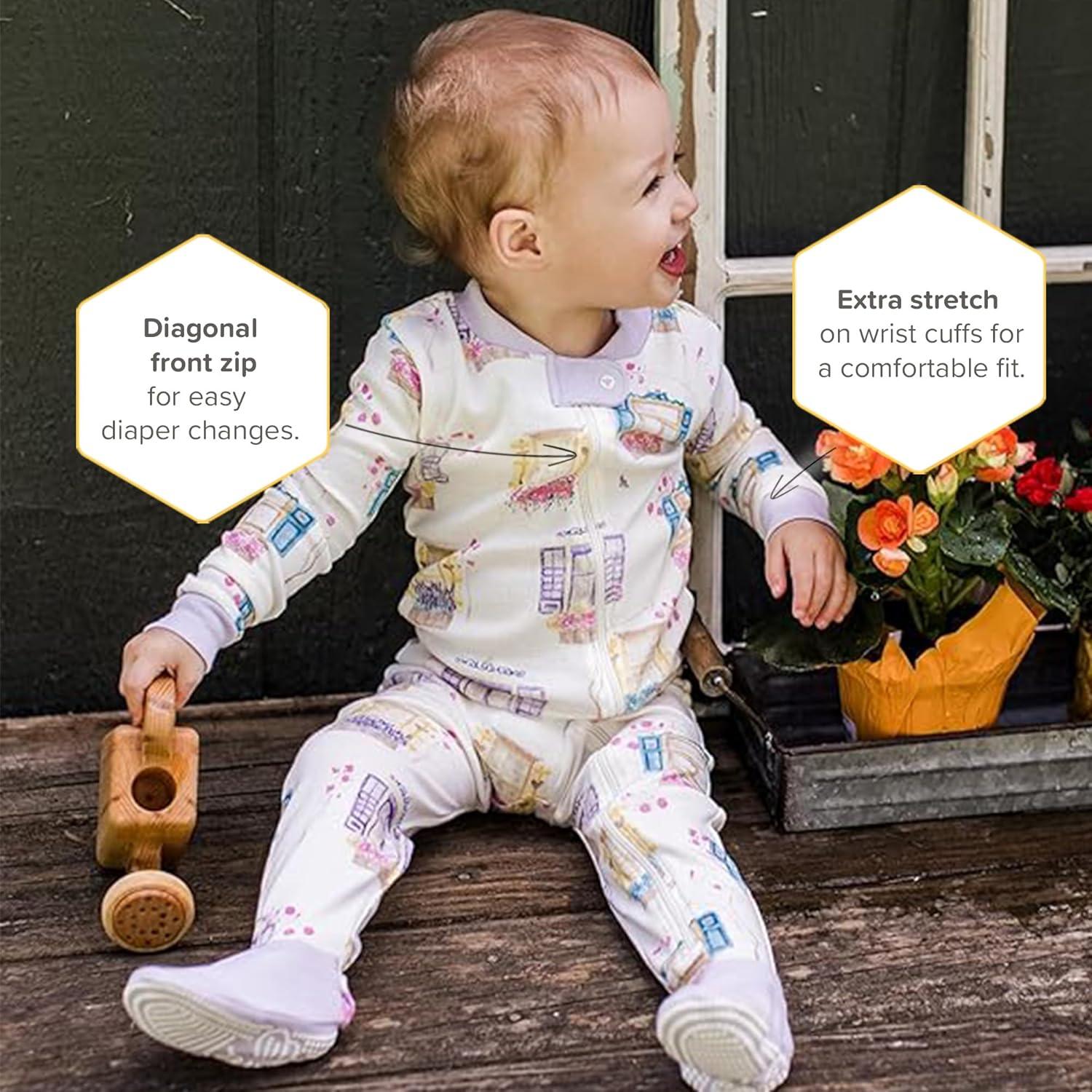 Burt’s Bees Baby Baby Girls Sleeper Pajamas, 100% Organic Cotton, One-piece PJs, Diagonal Zip Up Jumpsuit, Snug Fit Footie(Tea Time)
