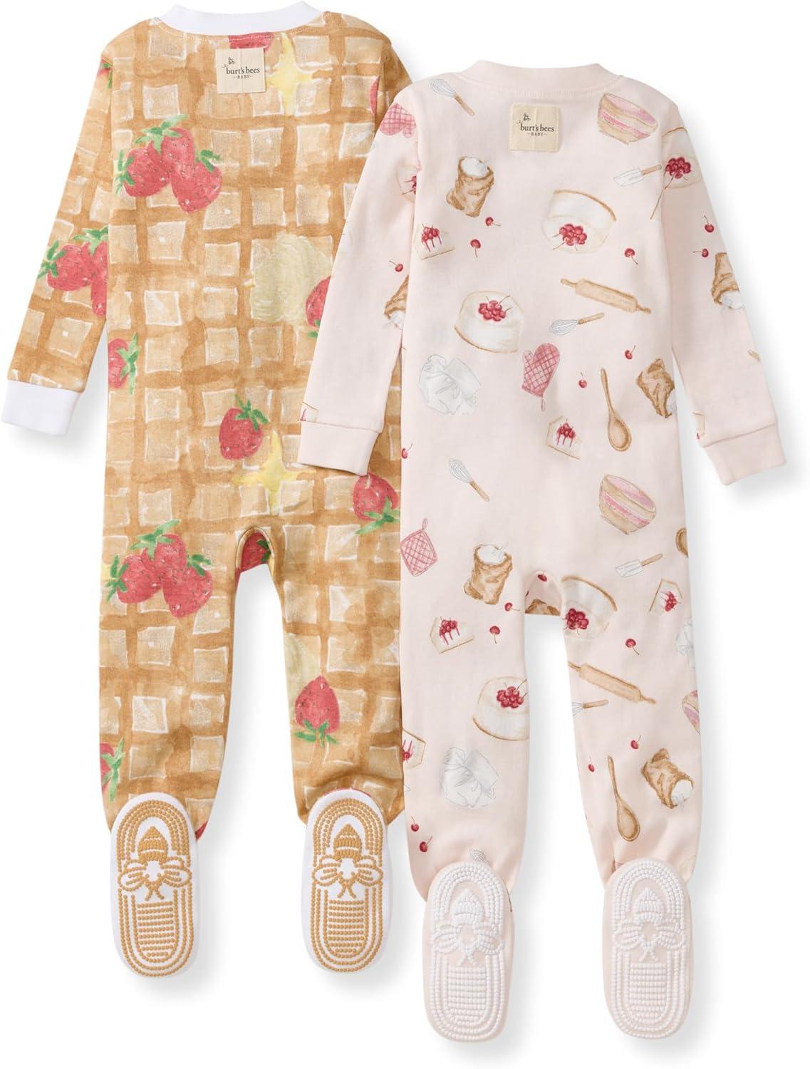 Burt's Bees Baby Baby Girls Sleeper Pajamas, 100% Organic Cotton, One-piece PJs, Diagonal Zip Up Jumpsuit, Snug Fit Footie(Waffle & Cheesecake)