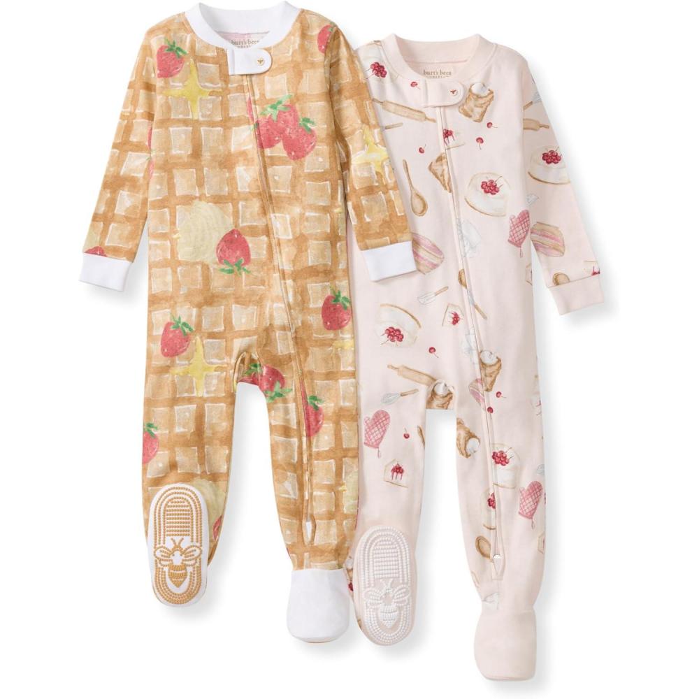 Burt’s Bees Baby Baby Girls Sleeper Pajamas, 100% Organic Cotton, One-piece PJs, Diagonal Zip Up Jumpsuit, Snug Fit Footie(Waffle & Cheesecake)