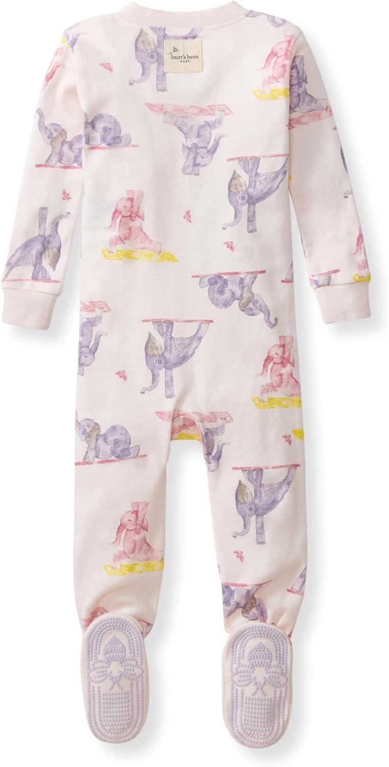 Burt's Bees Baby Baby Girls Sleeper Pajamas, 100% Organic Cotton, One-piece PJs, Diagonal Zip Up Jumpsuit, Snug Fit Footie(Yogi Elephants)