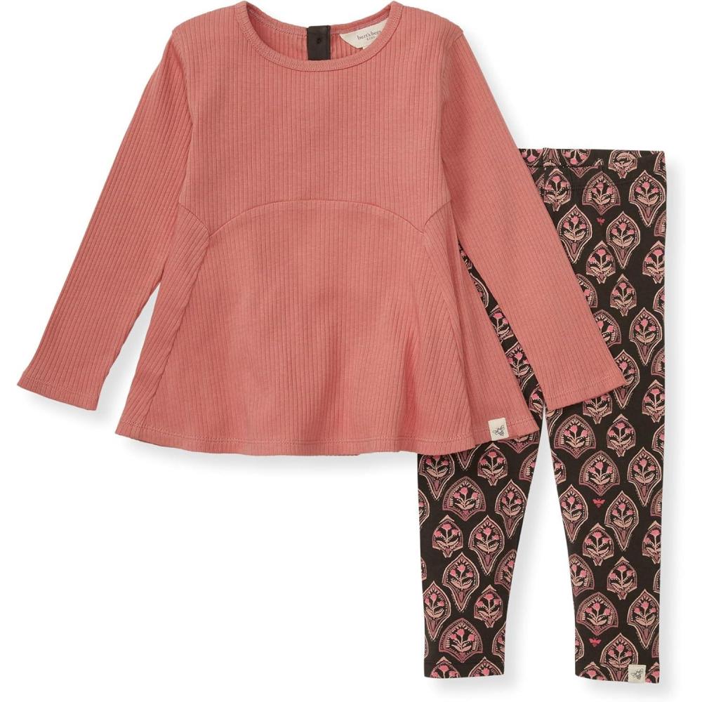 Burt’s Bees Baby Baby Girls Top and Pant Set, Tunic and Leggings Bundle, 100% Organic Cotton(Floral Arches Set)