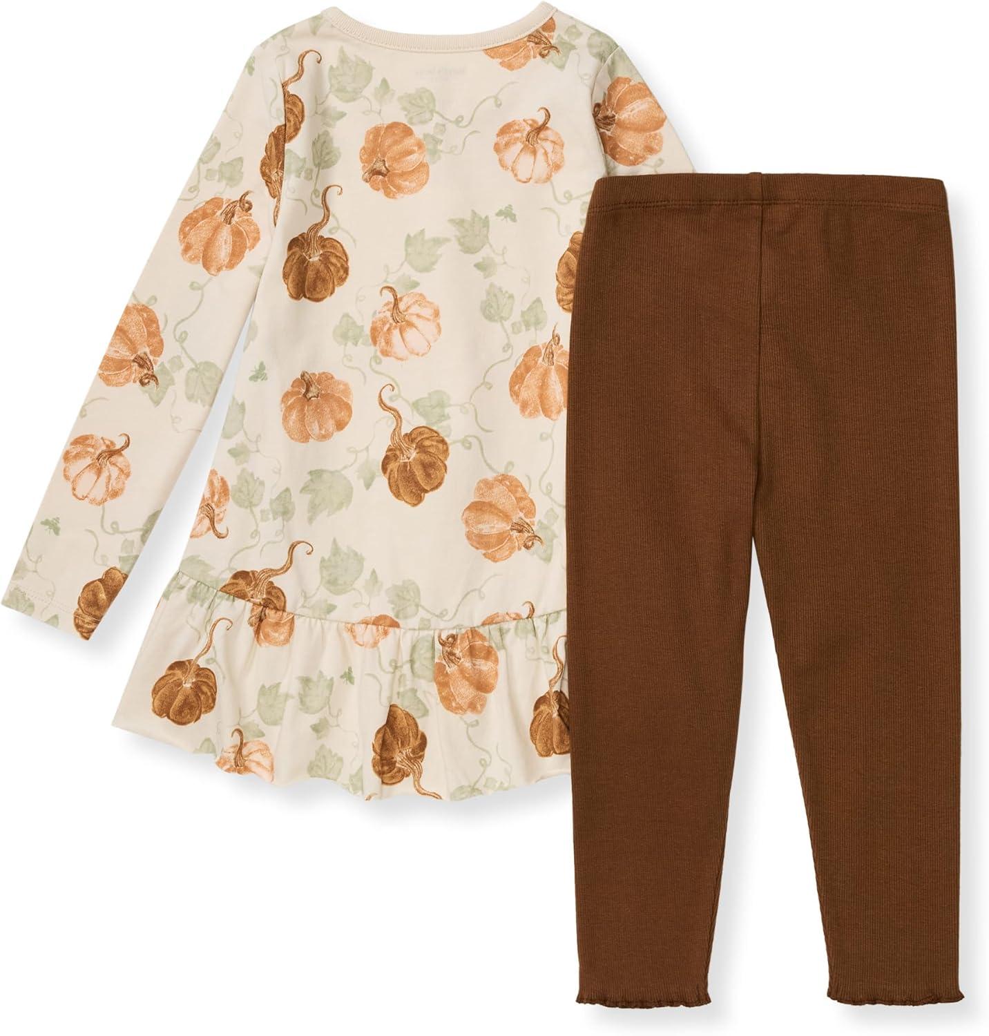 Burt's Bees Baby Baby Girls Top and Pant Set, Tunic and Leggings Bundle, 100% Organic Cotton(Lovey Pumpkins Set)
