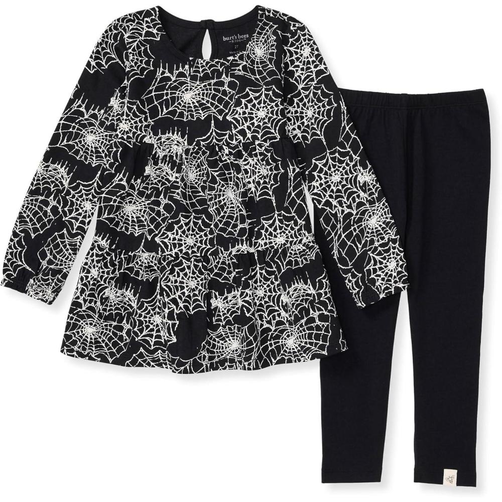 Burt's Bees Baby Baby Girls Top and Pant Set, Tunic and Leggings Bundle, 100% Organic Cotton(Spiderwebs Set)