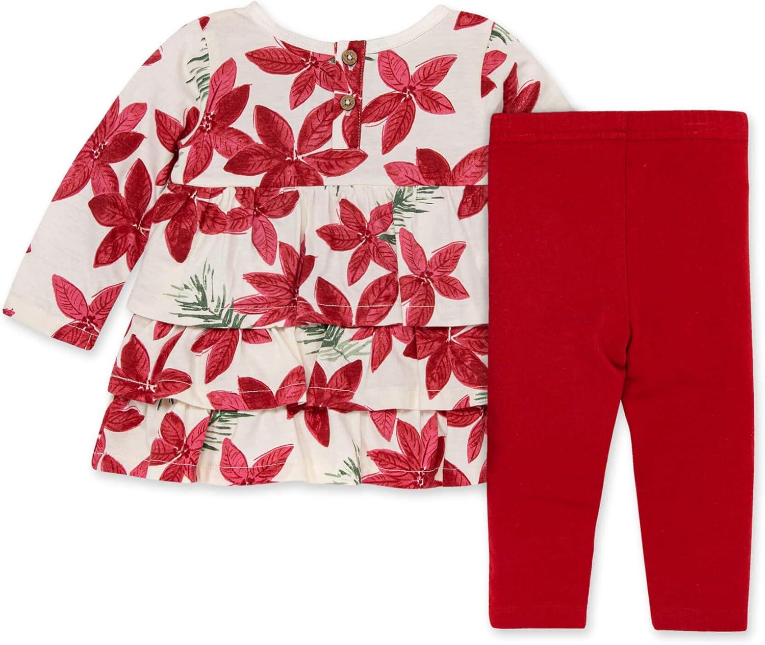 Burt's Bees Baby Baby Girls Top and Pant Set, Tunic and Leggings Bundle, 100% Organic Cotton(Watercolor Pointsettia)
