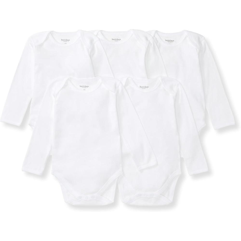 Burt’s Bees Baby Bodysuits, Short Sleeve and Long Sleeve One-Pieces, 100% Organic Cotton, Pack of 5(Cloud Long Sleeve)