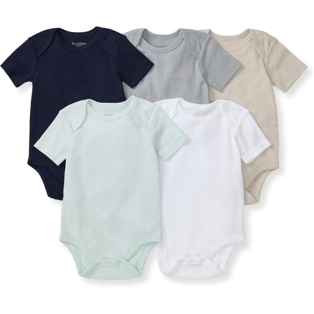 Burt’s Bees Baby Bodysuits, Short Sleeve and Long Sleeve One-Pieces, 100% Organic Cotton, Pack of 5(Cloud Short Sleeve)