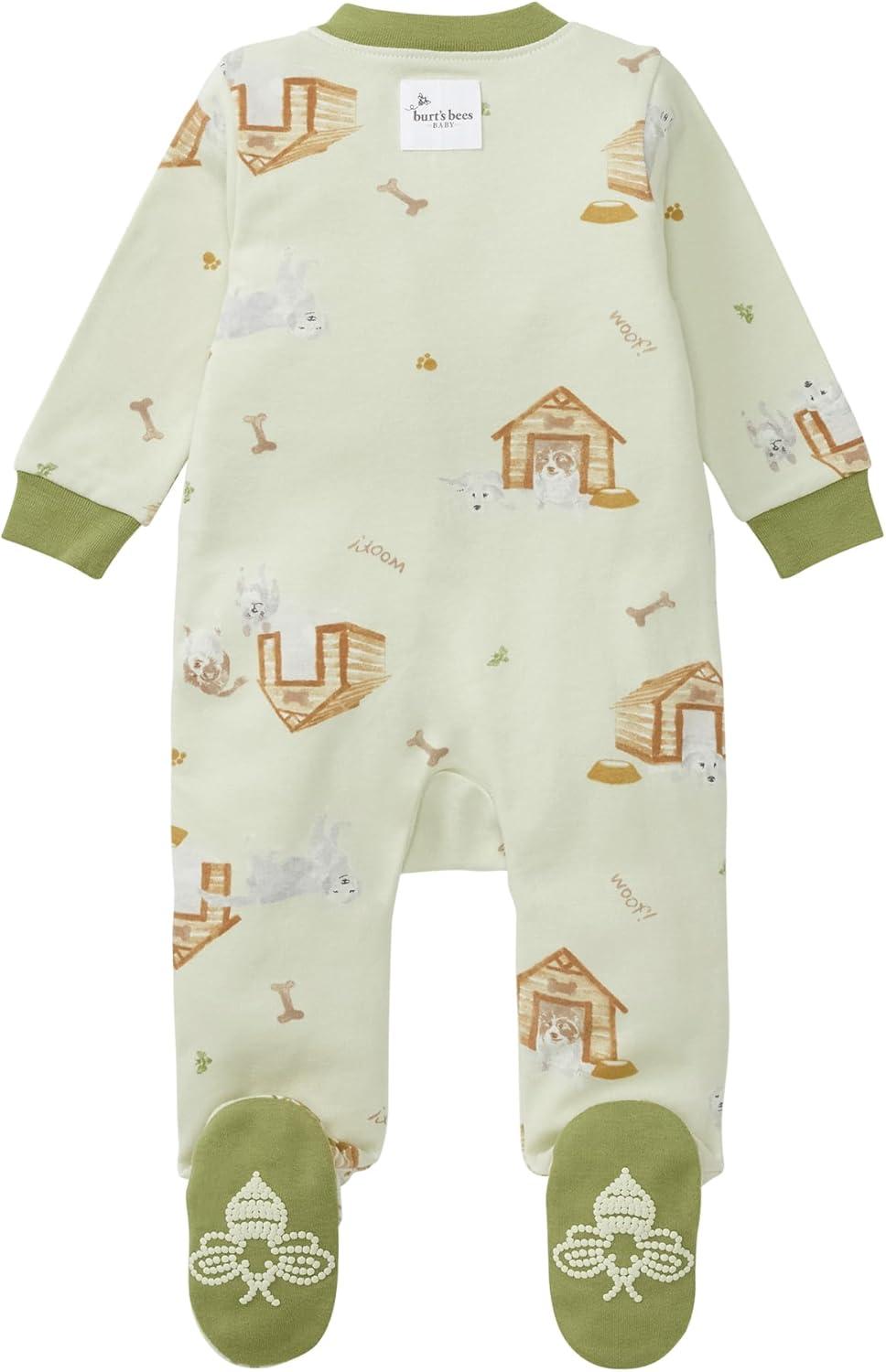 Burt’s Bees Baby Boys Sleep and Play PJs, 100% Organic Cotton One-Piece Zip Front Romper Jumpsuit Pajamas(Dog House)