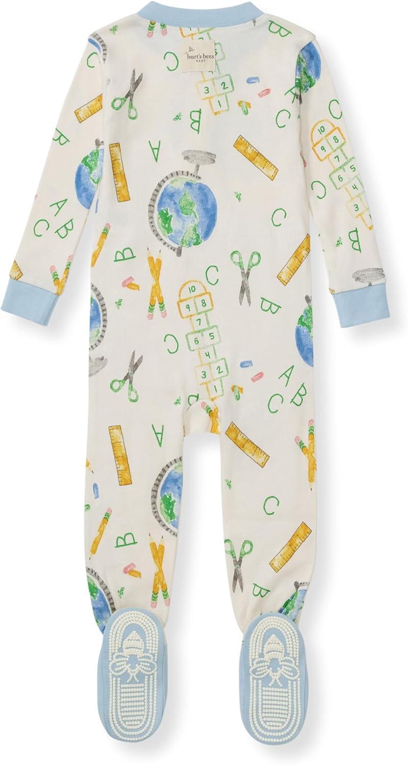 Burt’s Bees Baby Boys Sleep and Play PJs, 100% Organic Cotton One-Piece Zip Front Romper Jumpsuit Pajamas(Learn the Globe)