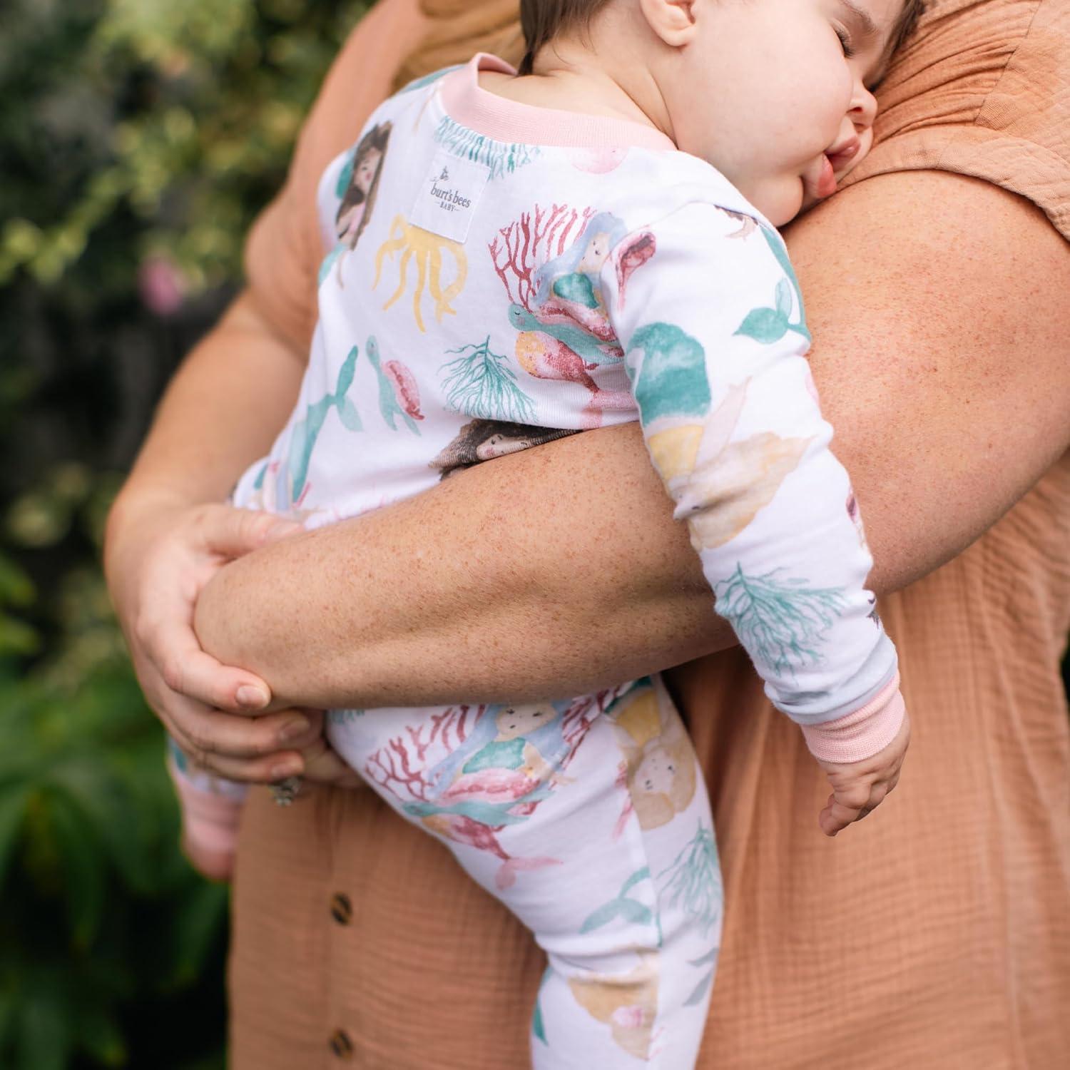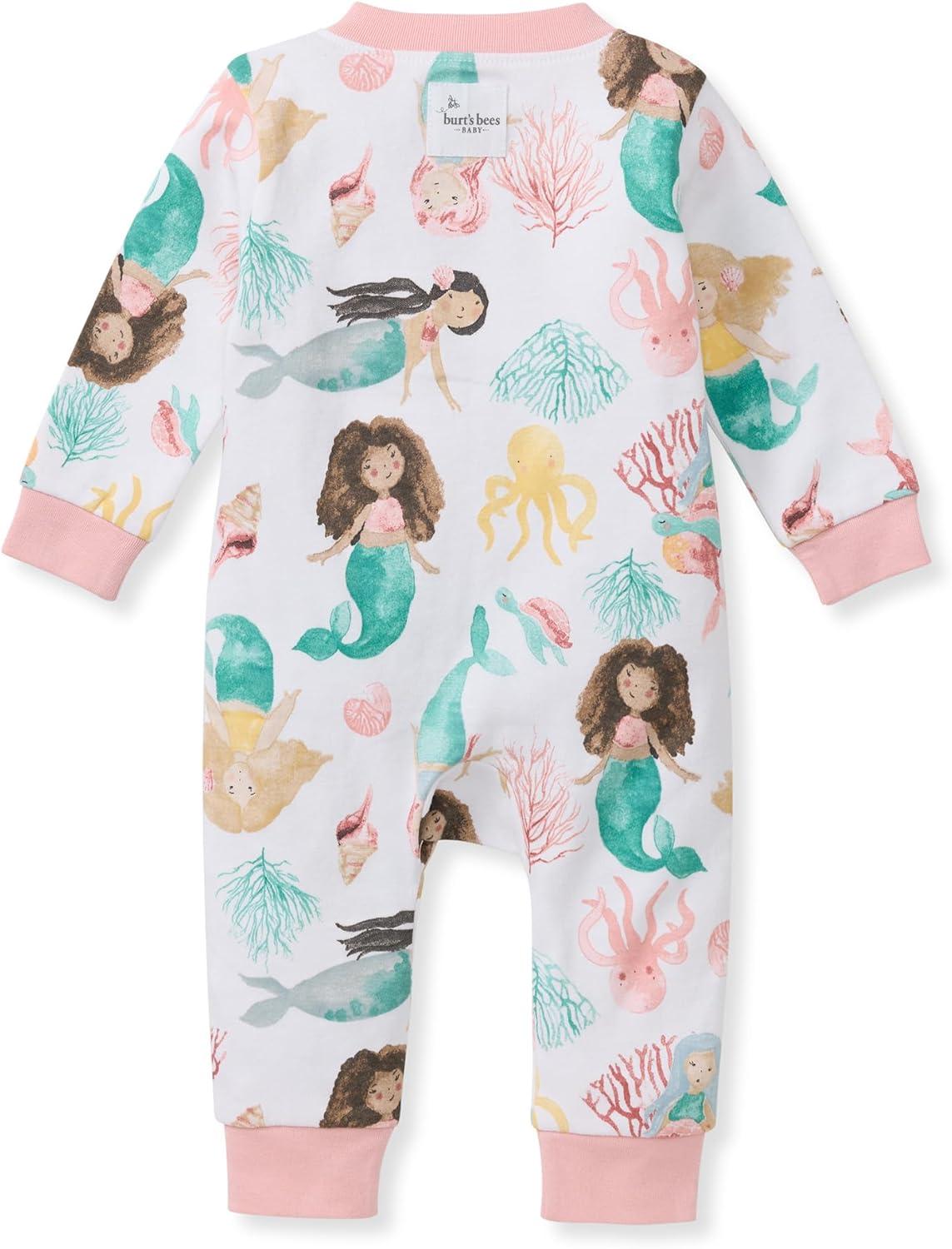 Burt's Bees Baby Boys Sleep and Play PJs, 100% Organic Cotton One-Piece Zip Front Romper Jumpsuit Pajamas(Magical Mermaids)