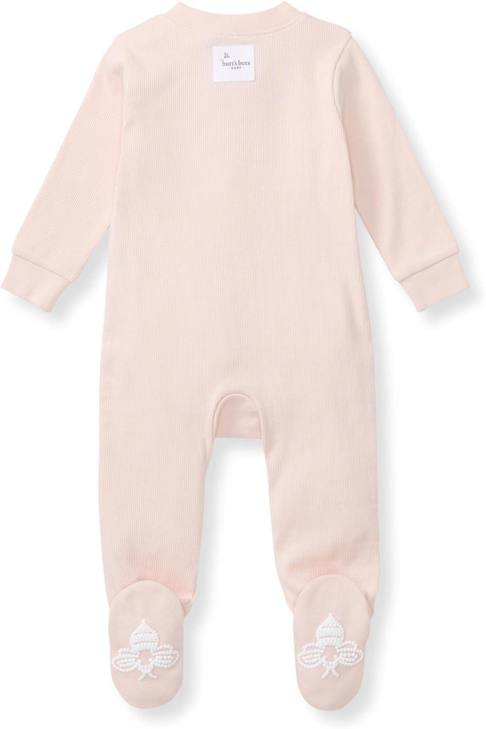 Burt’s Bees Baby Girls’ Organic Cotton Sleep and Play Footed Pajamas(Pink Solid Rib)