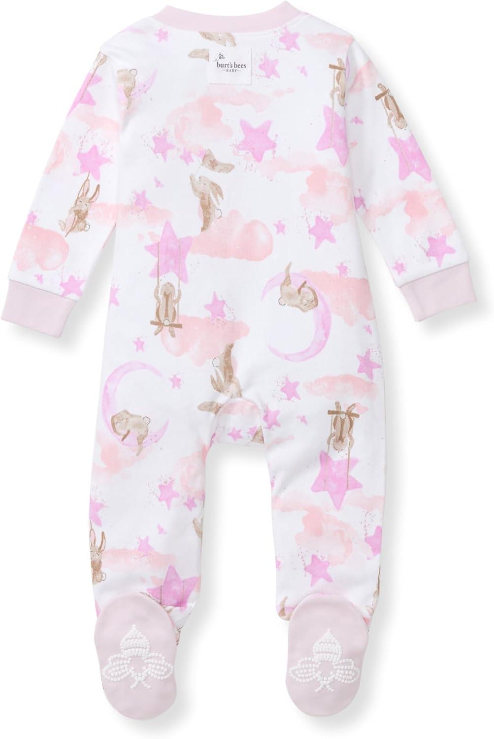 Burt’s Bees Baby Girls’ Organic Cotton Sleep and Play Footed Pajamas(Stardust Bunnies)