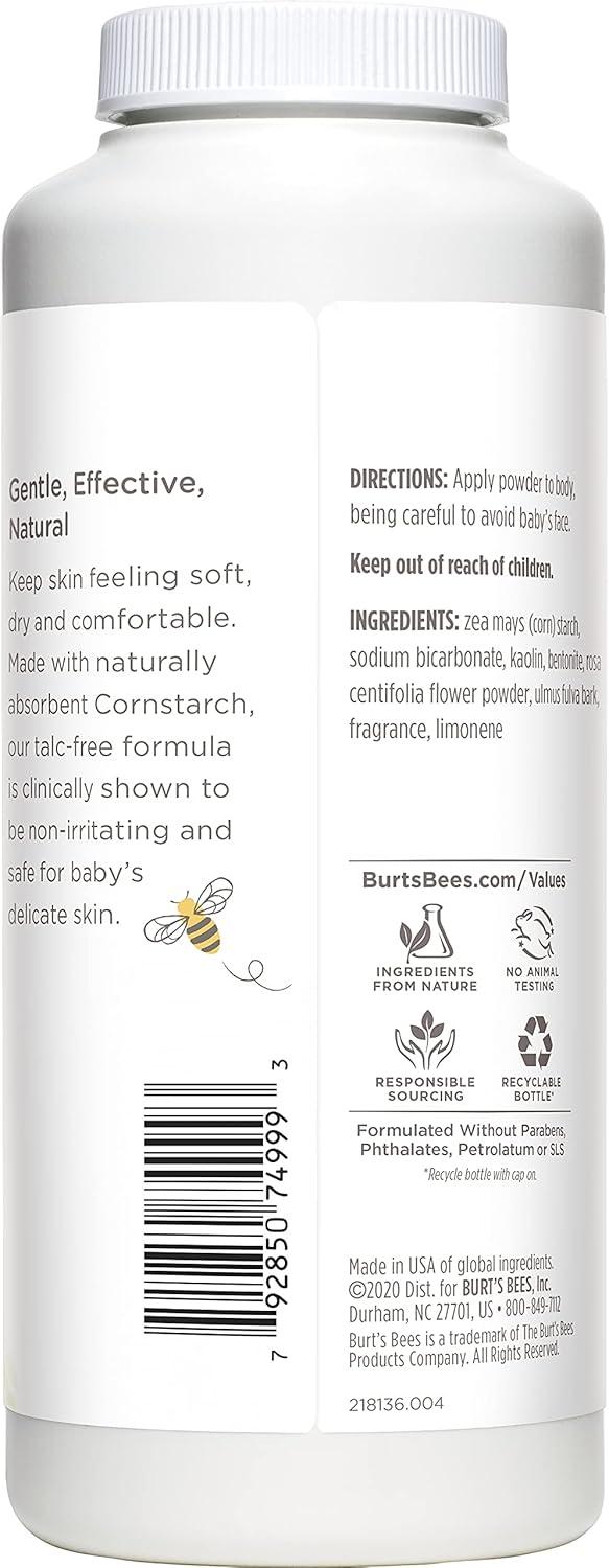 Burts Bees Baby Dusting Powder is clinically shown to be non irritating and safe for babys delicate skin. This 100% natural, talc free baby powder keeps skin feeling soft, smooth, dry and wonderfully scented. The naturally absorbent cornstarch makes it safe and smooth for topical use. Plus, its pediatrician tested so you can use it with confidence. Smooth the powder liberally onto babys skin and reapply as needed to absorb dampness. Nurture babys skin naturally with Baby Bee from Burts Bees.