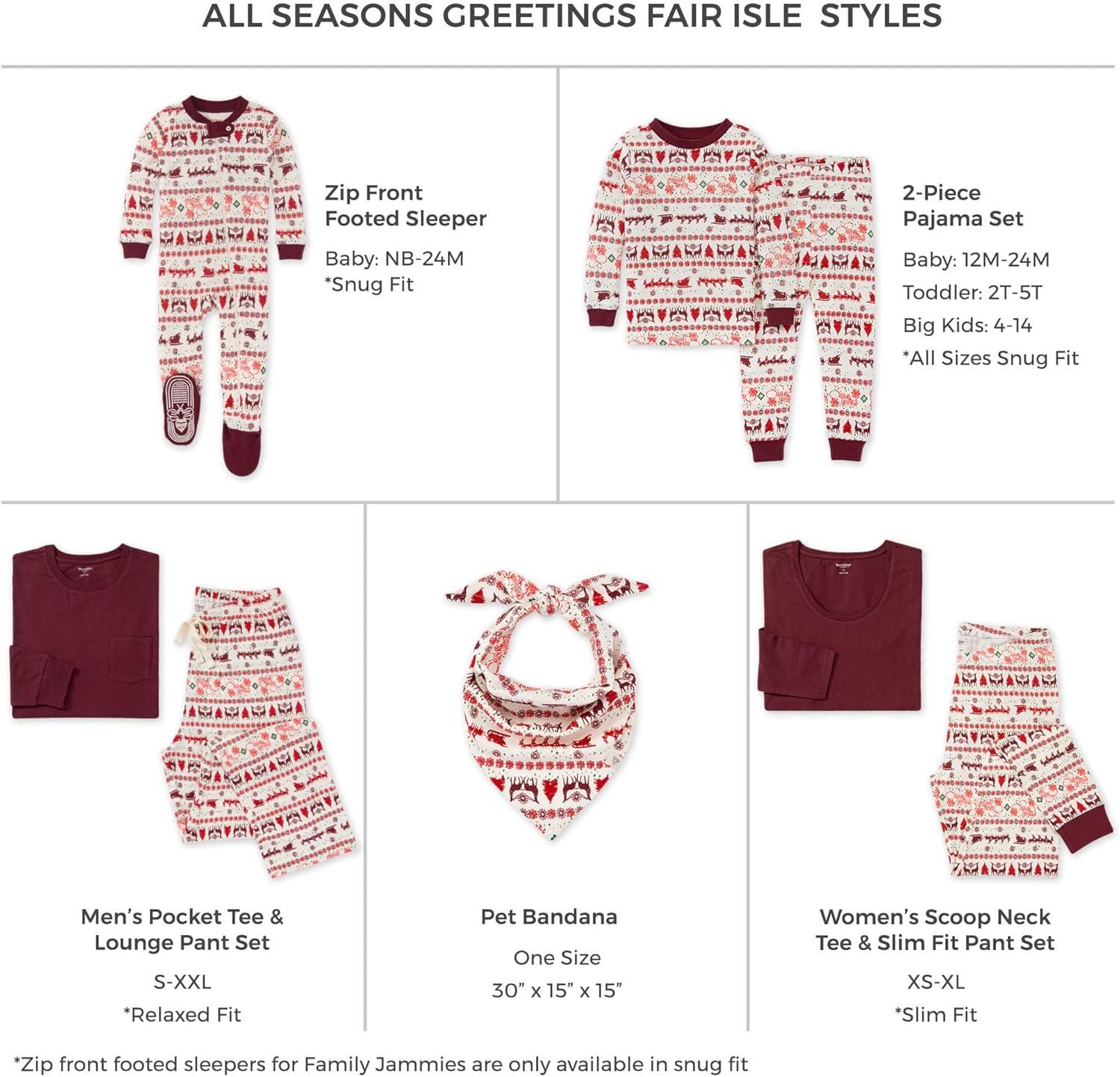 Get ready to celebrate the holiday season in style with Burt’s Bees Baby Family Matching Holiday Pajamas! Made from organic cotton, these festive PJs are perfect for creating unforgettable family memories. Whether you’re looking for matching Christmas pajamas for family photos, a cozy outfit for opening presents, or the perfect gift for friends and family, these holiday PJs are designed to bring everyone together in comfort and cheer. Ultimate Comfort & Quality: Our matching family Christmas pajamas are crafted from organic cotton, ensuring they’re soft, breathable, and gentle on sensitive skin. Ideal for the whole family, these PJs offer a snug fit with just the right amount of stretch, making them perfect for lounging, playing, and sleeping. Festive Fun for All Ages: Our seasonal family pajamas are available in a variety of holiday-themed prints, including football, pumpkins, reindeer, snowflakes, and Christmas trees, these PJs make every moment feel festive. Choose from sizes for infants, toddlers, big kids, and adults, with special dog bandanas so your furry friends can join in the fun! Designed for Durability: The high-quality organic cotton fabric maintains its softness and vibrant color, wash after wash. The easy-care PJs are machine washable. Perfect for Every Occasion: Whether you’re snuggling up for a holiday movie marathon, taking family photos, or hosting a holiday brunch, these matching holiday pajamas are sure to make your celebration even more special. Available in 2pc sets for baby boys, girls, toddlers, men, and women, there’s something for everyone in our family collection. Create Lasting Memories: Make this holiday season unforgettable with matching family Christmas pajamas, family football matching pajamas and family Halloween matching pajamas. Our cozy, festive designs are perfect for creating cherished memories with your loved ones—because the best part of the holidays is being together. Manufactured according to GOTS standards.